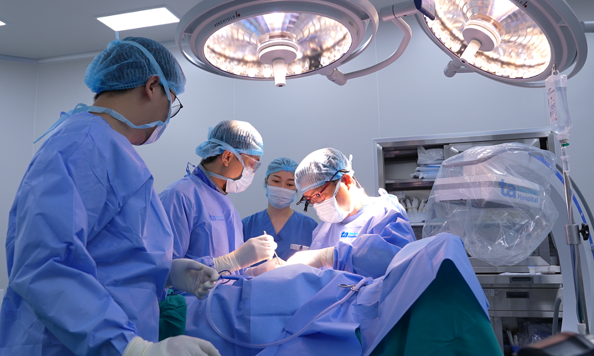 Tiến sĩ Nghĩa phẫu thuật cho anh Tuấn. Ảnh: Bệnh viện Đa khoa Tâm Anh