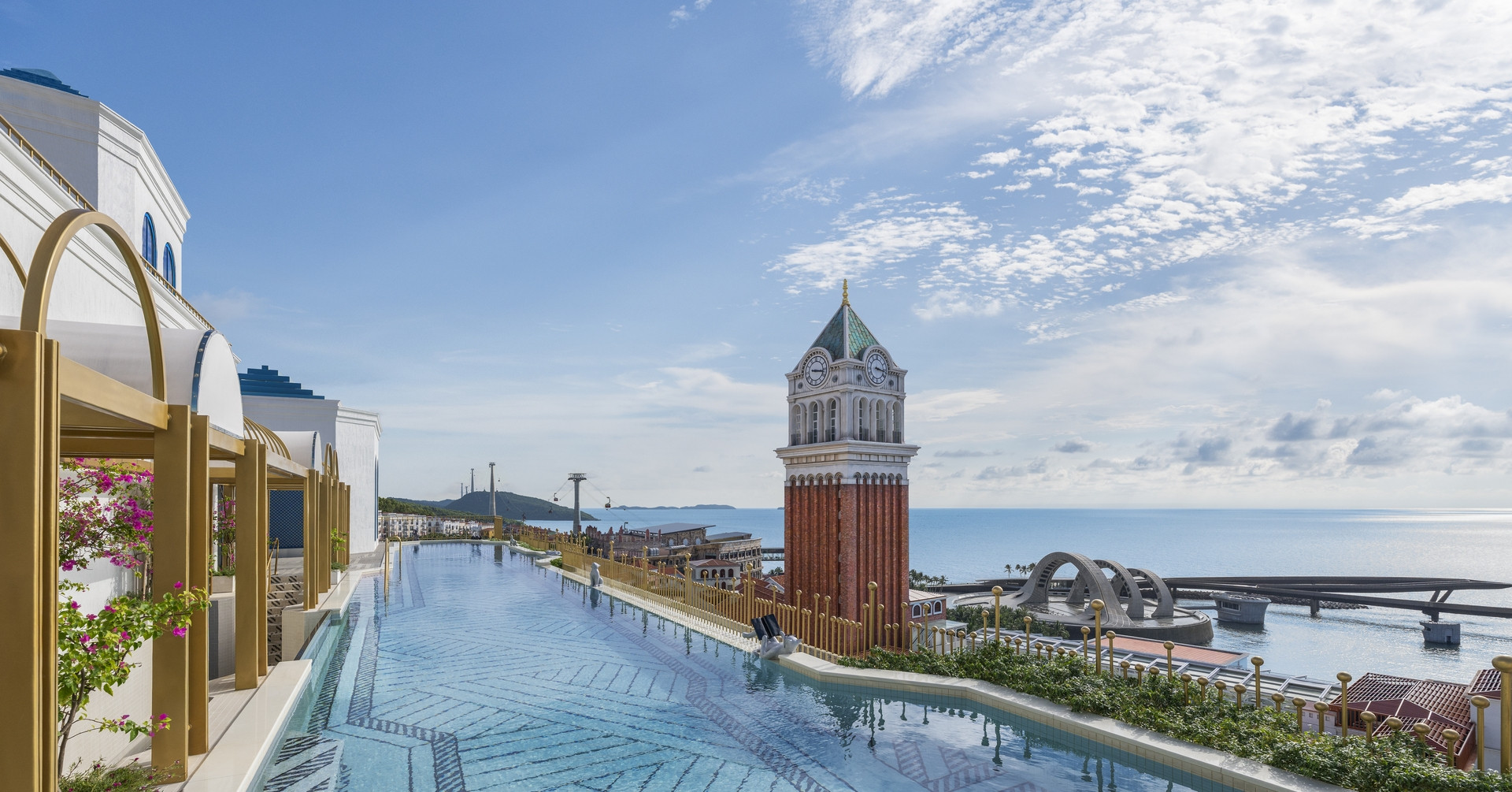 Tọa lạc trên sườn đồi đối diện tháp đồng hồ Campanile và hướng tầm nhìn về Cầu Hôn mang tính biểu tượng, công trình mang phong cách tân cổ điển pha với Địa Trung Hải này mở ra một chương trải nghiệm mới với 29 phòng suite và duplex, bốn không gian ẩm thực và giao lưu đặc sắc gồm quầy bar tầng thượng, nơi du khách có thể chiêm ngưỡng trọn vẹn sắc vàng rực rỡ của những buổi hoàng hôn trên đảo Phú Quốc.