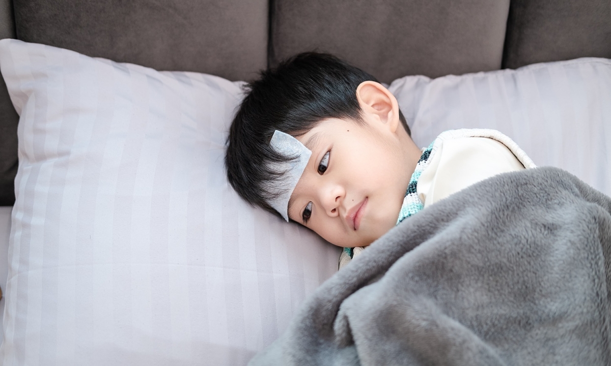 Trẻ mắc cúm có thể chăm sóc tại nhà, lưu ý các dấu hiệu như thở nhanh, rút lõm ngực, co giật… để đến bệnh viện kịp thời. Ảnh: Vecteezy