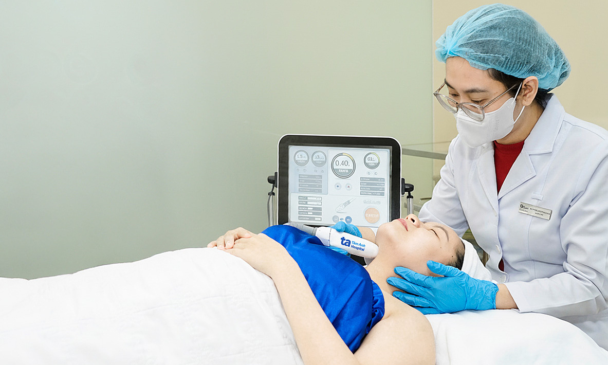 Bác sĩ sử dụng công nghệ HIFU làm săn chắc vùng da cổ, cằm. Ảnh minh họa: Phòng khám Đa khoa Tâm Anh Quận 7