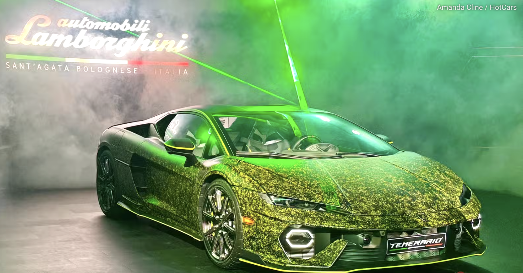 Ba tông màu Verde Shock, Grigio Maat và Nero Nemesis hòa vào nhau theo một bố cục phức tạp, nhấn theo từng đường khí động học trên thân xe. Ngay cả khi thiết kế nguyên bản của Temerario đã rất nổi bật, lớp sơn thủ công này khiến mọi góc nhìn trở nên cuốn hút hơn.