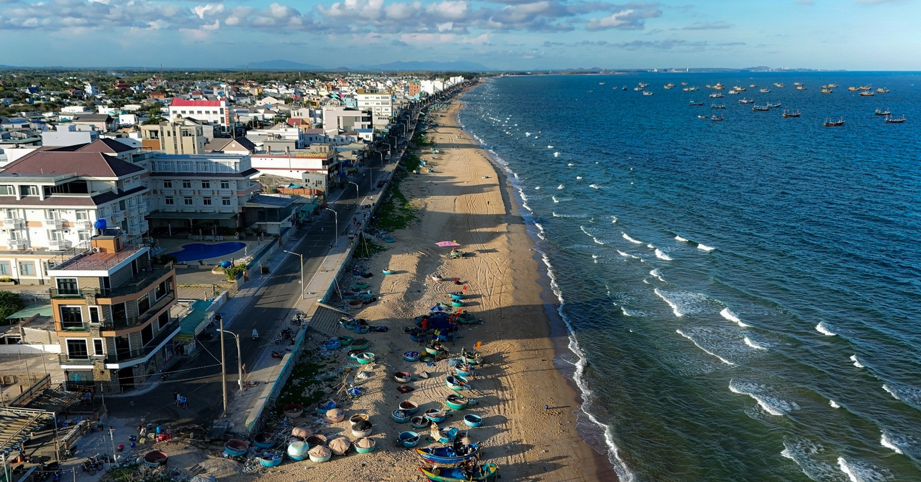 Nằm cách bờ kè Phước Hải không quá xa là bờ kè Lộc An, cảng cá và bãi biển cũng rất đẹp để du khách ngắm cảnh, check-in. “Cảng cá ở đây ghe thuyền đậu tấp nập, biển rất sạch, đẹp và vắng người”, Lương cho biết.