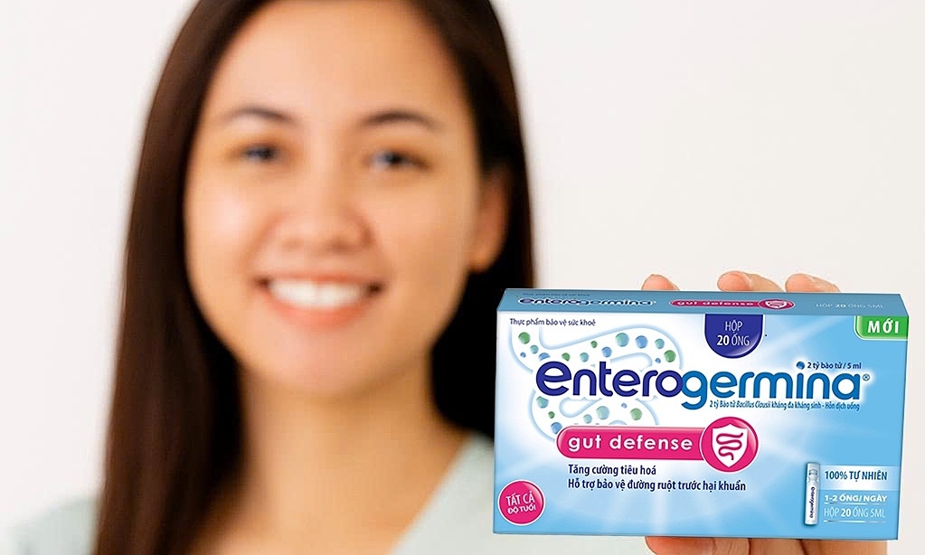 Một trong các men vi sinh hỗ trợ tiêu hóa được chú ý trên thị trường hiện nay là Enterogermina Gut Defense, sản xuất tại Italy. Sản phẩm được Cục An toàn Thực phẩm phê duyệt cho công dụng tăng cường tiêu hóa và hỗ trợ bảo vệ đường ruột trước hại khuẩn. Sản phẩm không chứa lactose, gluten và chất bảo quản, thích hợp sử dụng cho mọi lứa tuổi và giới tính.