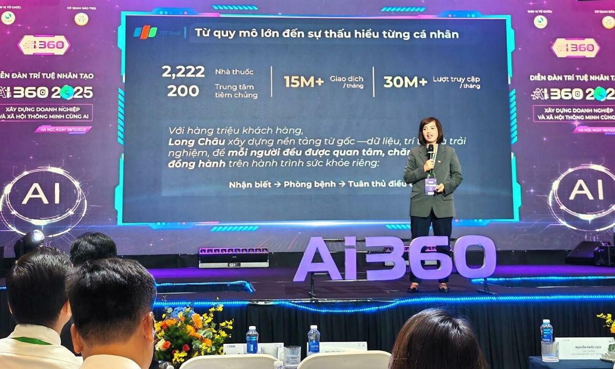 Trong phiên hội thảo “Xây dựng doanh nghiệp và xã hội thông minh cùng AI – AI360”, bà Nguyễn Đỗ Quyên – Phó tổng giám đốc FPT Retail kiêm Giám đốc điều hành hệ thống nhà thuốc và trung tâm tiêm chủng Long Châu – trình bày chiến lược ứng dụng AI cá nhân hóa mục tiêu chăm sóc sức khỏe người Việt, qua đó tái khẳng định tầm nhìn của đơn vị: kết nối công nghệ với y tế cộng đồng một cách nhân văn, thiết thực và bền vững.