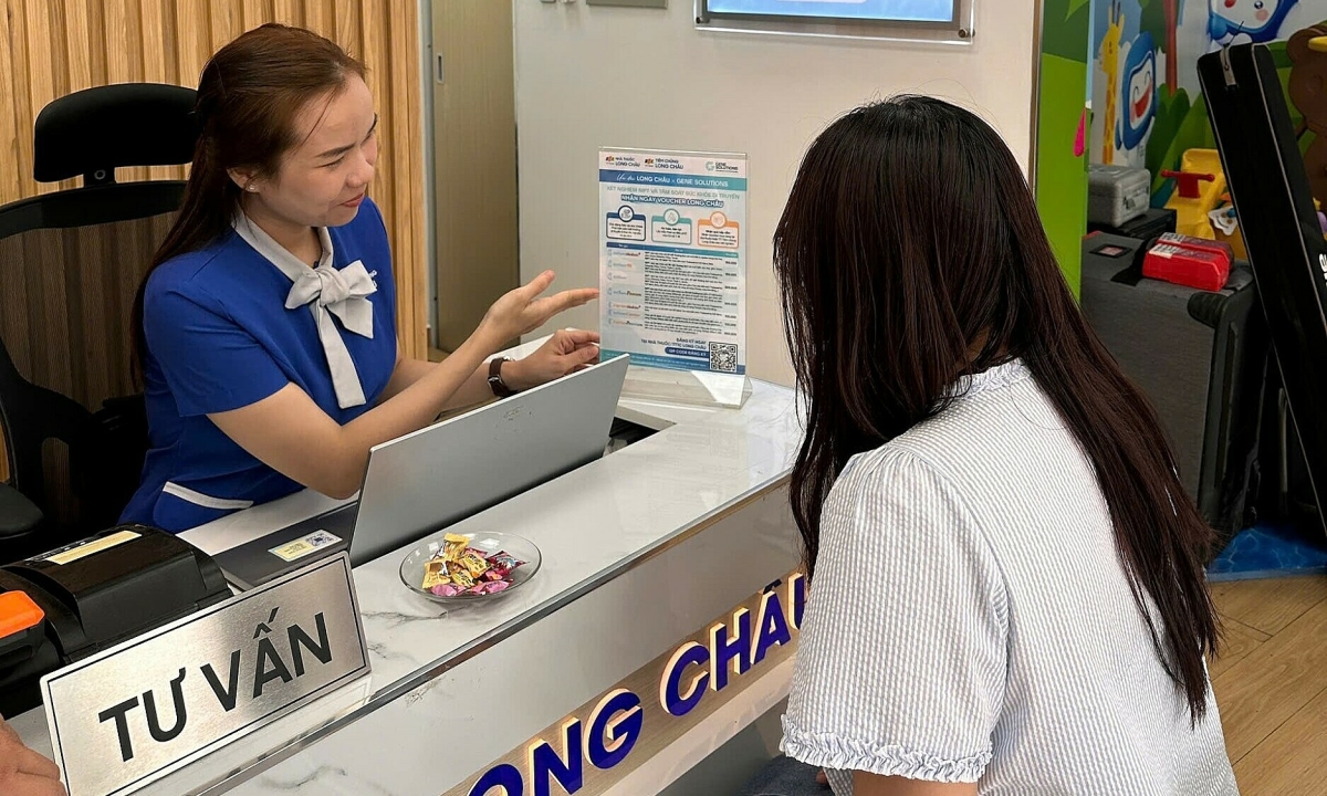 Nhân viên Long Châu tư vấn khách hàng thực hiện triSure NIPT và tham gia chương trình VIP Card. Ảnh: Long Châu