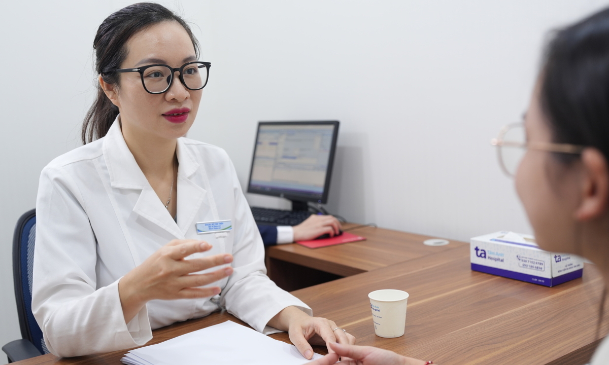 Bác sĩ khoa Thẩm mỹ đang tư vấn cho một phụ nữ. Ảnh: Bệnh viện cung cấp