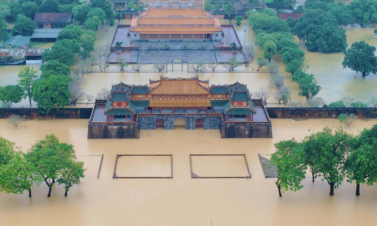Trong đợt mưa lũ từ cuối tháng 10 tại Huế, trong khi nhiều khu vực trong Đại Nội Huế ngập sâu hơn nửa mét, điện Thái Hòa – công trình trung tâm của hoàng thành Huế vẫn đứng vững, bên trong gần như khô ráo. Theo các chuyên gia, khả năng chống lũ của công trình đến từ nền cao, quy hoạch hợp lý qua nhiều triều vua Nguyễn và hệ thống hồ nước bao quanh giúp thoát nước hiệu quả.