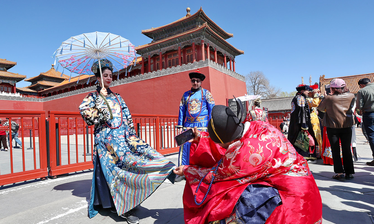 Khách nước ngoài chụp ảnh ở Tử Cấm Thành. Ảnh: China Daily