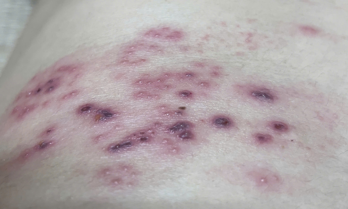 Các nốt mụn nước zona thần kinh ở vùng ngực của Thành Vinh. Ảnh: Nhân vật cung cấp