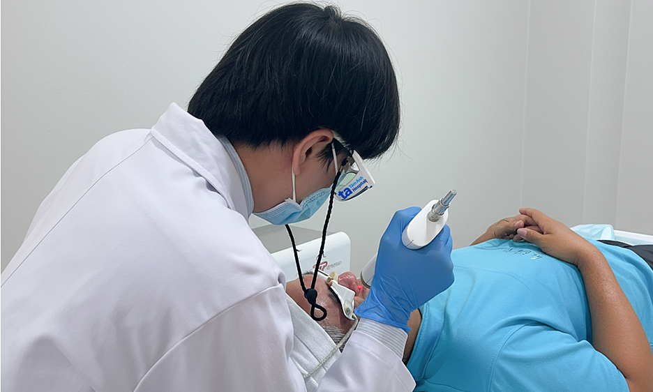 Bác sĩ sử dụng laser YAG xung dài điều trị các mao mạch giãn cho ông Hưng. Ảnh: Bệnh viện Đa khoa Tâm Anh