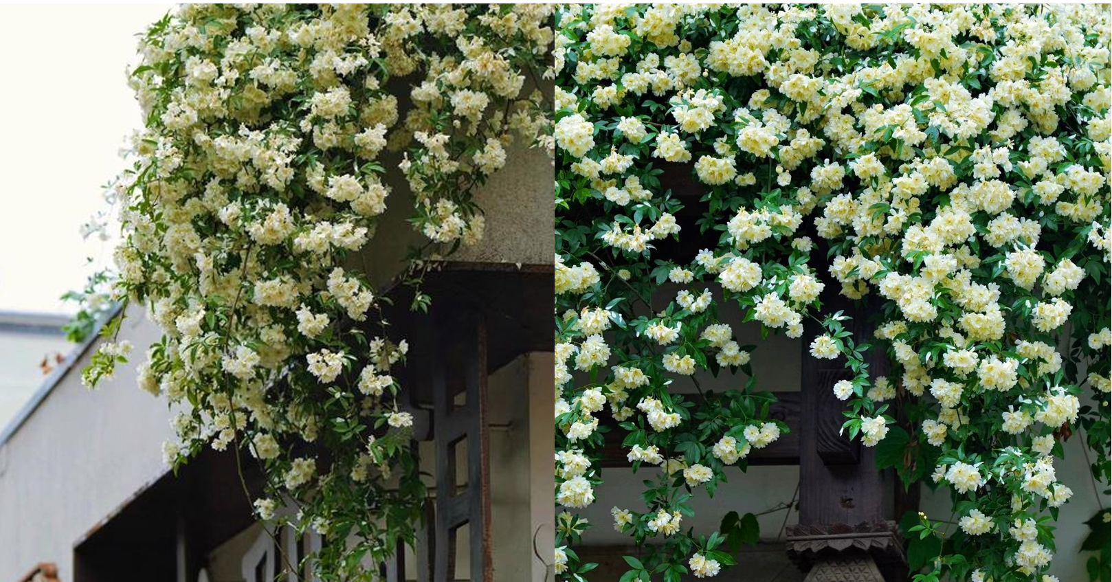 Hình ảnh những chùm hoa nhỏ li ti, trắng ngà hoặc vàng nhạt, vươn mình trên giàn leo hay bám vào hàng rào, gợi lên cảm giác thanh bình, nhẹ nhàng nhưng kiên cường, rất phù hợp để trang trí không gian sống, sân vườn hoặc công viên.