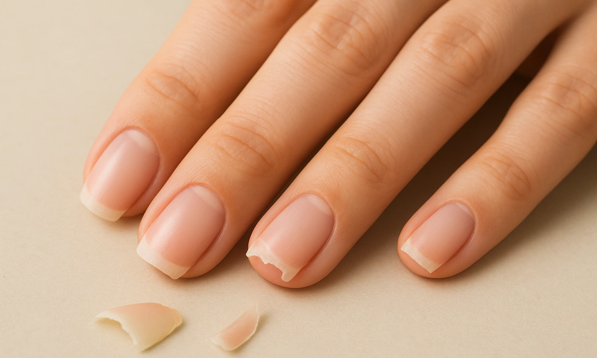 Móng tay dễ gãy thường là dấu hiệu cơ thể thiếu chất. Ảnh: AI