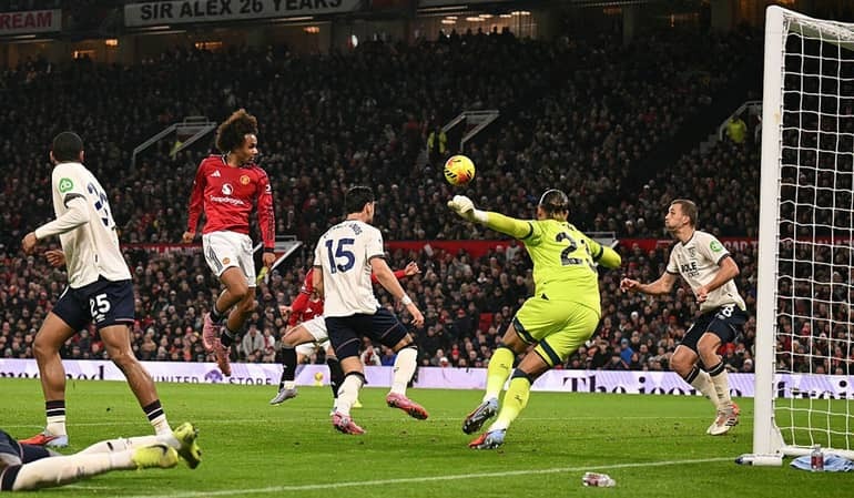 Vài phút sau, nỗ lực của Amad Diallo mang đến cho Zirkzee cơ hội ghi bàn bằng … đùi nhưng hậu vệ từng tung hoành tại Old Trafford, Wan-Bissaka đã cứu thua ngay trên vạch vôi. Trái bóng bật ra và hết Cunha móc bóng bất thành thì tới lượt Bruno Fernandes “song phi” dứt điểm sạt cột dọc.