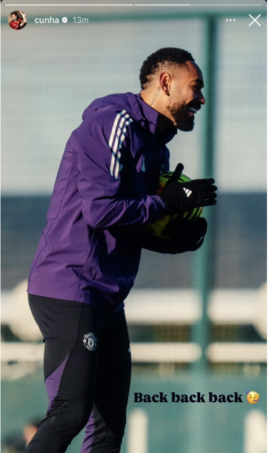 Trước đó va chạm trong lúc tập luyện đã khiến cựu sao Wolves vắng mặt trong 2 trận gần nhất của MU với Everton và Crystal Palace. Cunha được ký hợp đồng từ Wolves với giá 62,5 triệu bảng Anh, nhưng chỉ ghi được một bàn thắng và không có pha kiến tạo nào trong 10 trận đấu đầu tiên tại giải đấu mùa này.