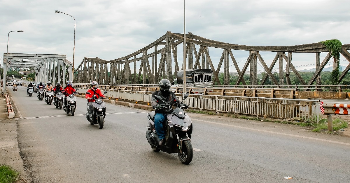 Đoàn xe đang vượt quan cầu Sêrêpốk, tiếp tục hành trình chinh phục miền đất Tây Nguyên (Ảnh: SYM Vietnam).