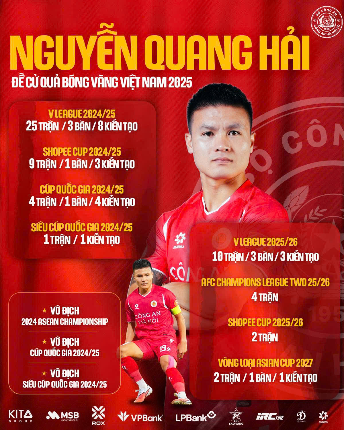 Với một năm thi đấu đầy nỗ lực, Quang Hải xứng đáng được nêu tên như một đầu tàu của CLB bóng đá Công an Hà Nội và cũng là ứng viên nặng ký cho danh hiệu QBV Việt Nam 2025.