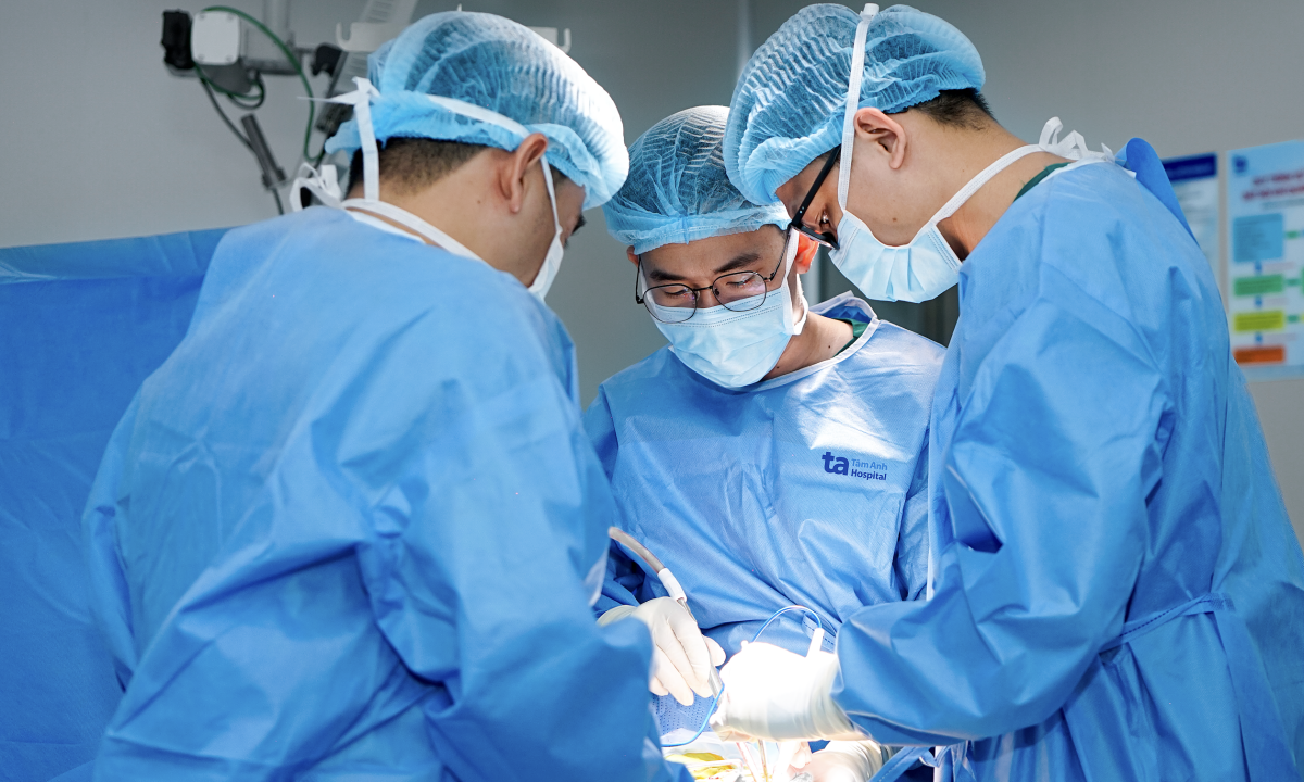 Bác sĩ Thạnh (giữa) thực hiện kết hợp xương cho người bệnh. Ảnh: Bệnh viện Đa khoa Tâm Anh