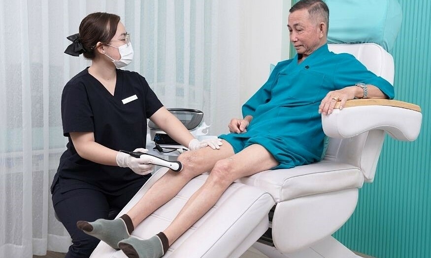 Ông Hải điều trị khớp gối tại InterMec. Ảnh: InterMec