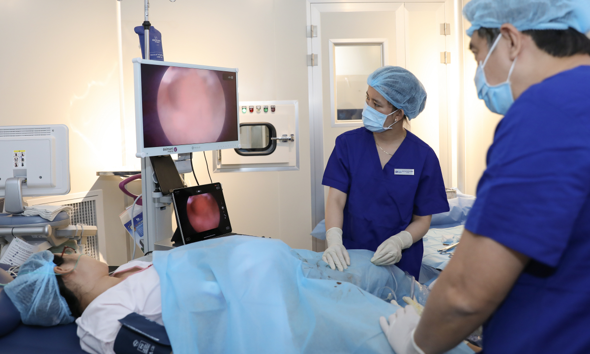 Các bác sĩ thực hiện kỹ thuật nội soi buồng tử cung cho người bệnh trước khi chuyển phôi thụ tinh ống nghiệm. Ảnh minh họa: Nguyễn Thắng
