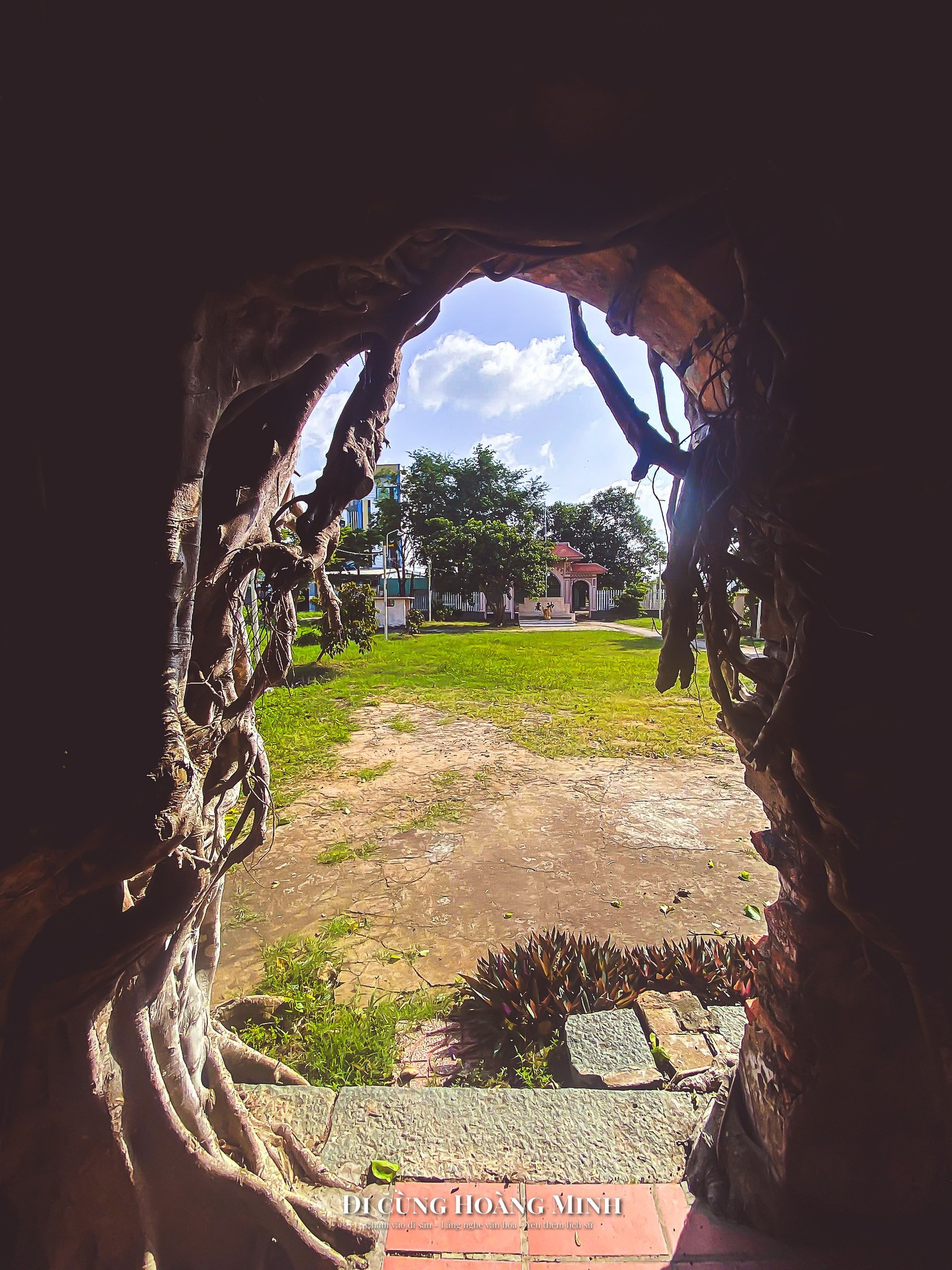 Trên đường đi, nam sinh nhìn thấy một ngôi đình độc đáo, được 2 cây bồ đề lớn buông rễ ôm trọn. “Đầu tháng 6 em có một chuyến du lịch Campuchia. Tại đây em có tới đền Ta Prohm – ngôi đền được bao phủ bởi những rễ cây khổng lồ.
