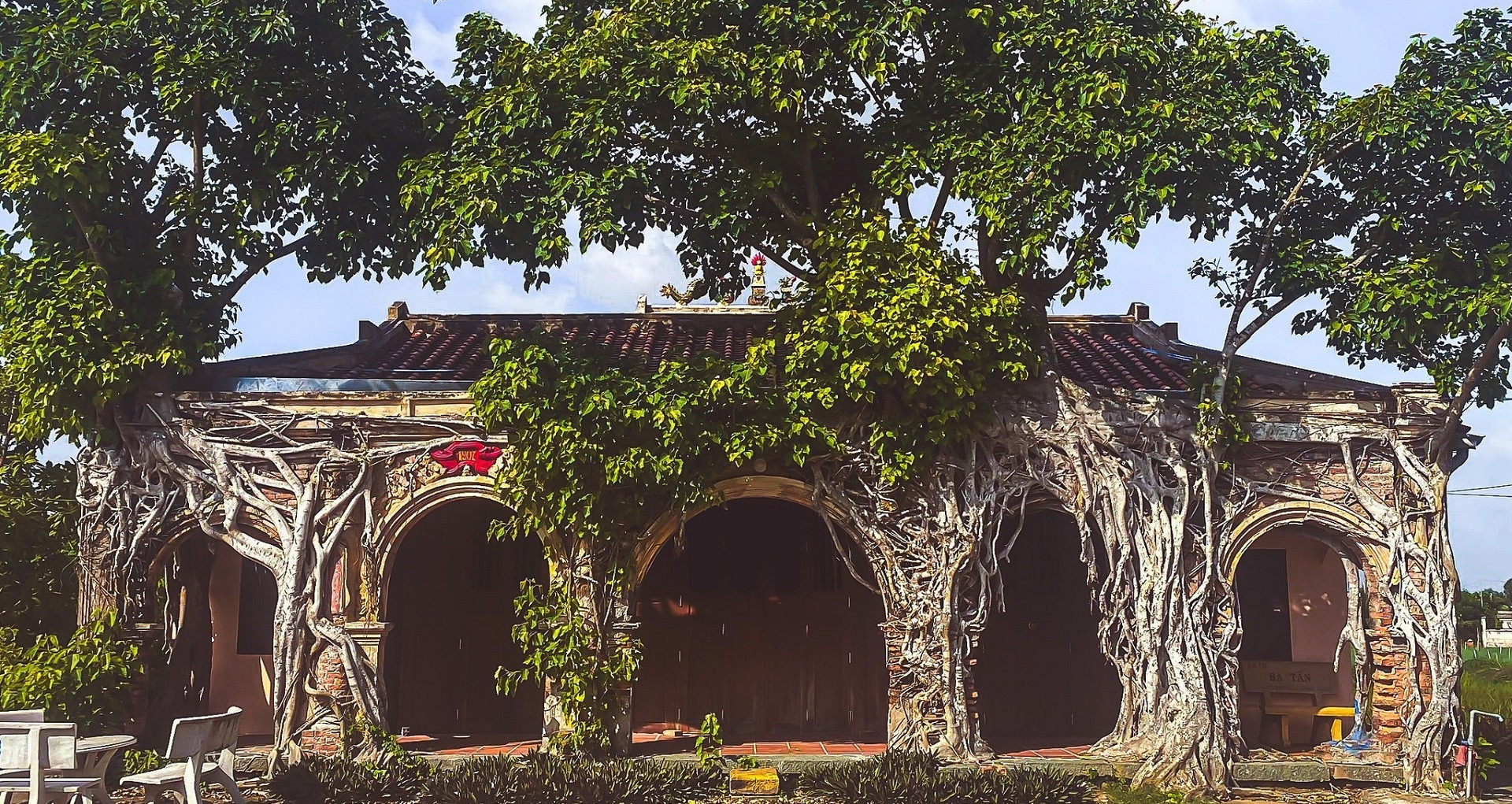 Ngôi đình độc nhất vô nhị ở Đồng Tháp, được 2 cây bồ đề buông rễ ôm trọn