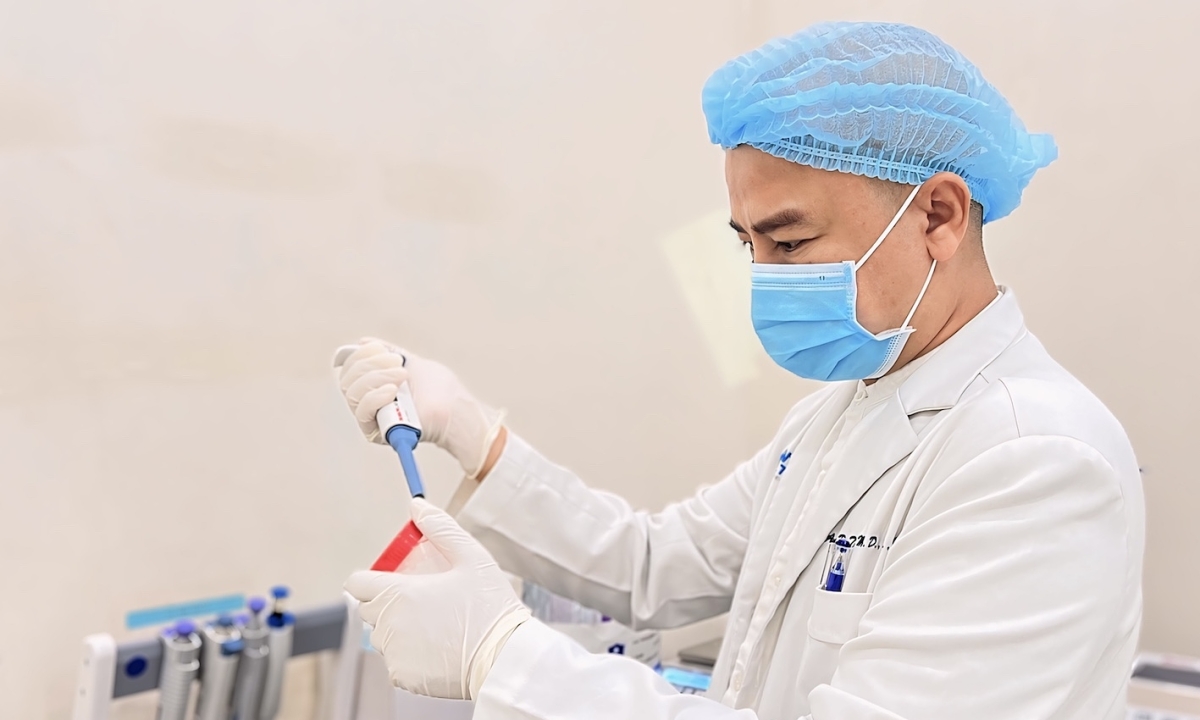 Bác sĩ xét nghiệm tinh dịch đồ. Ảnh: Lâm Anh