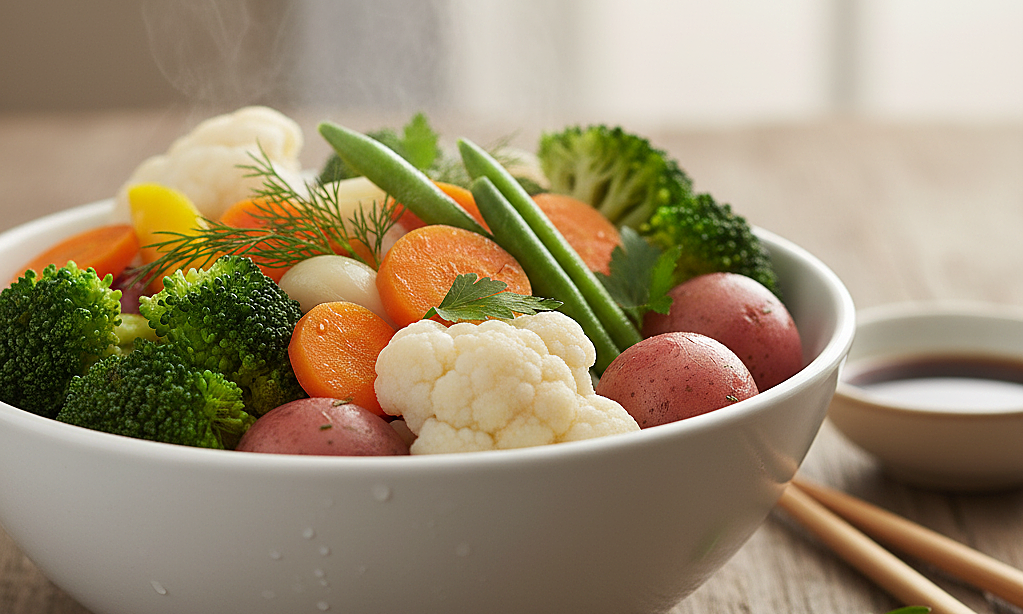 Rau củ luộc tốt cho sức khỏe người cao tuổi. Ảnh được tạo bởi AI