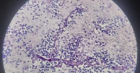 Trước diễn biến nguy kịch, người bệnh được chỉ định phẫu thuật cấp cứu lấy khối máu tụ não. Mẫu bệnh phẩm được gửi làm xét nghiệm giải phẫu bệnh. Kết quả cho thấy hoại tử mô não lan rộng, kèm theo nhiều sợi nấm kích thước lớn. Các bác sĩ chẩn đoán áp xe não do nhiễm nấm xâm lấn, hướng đến nấm đen.