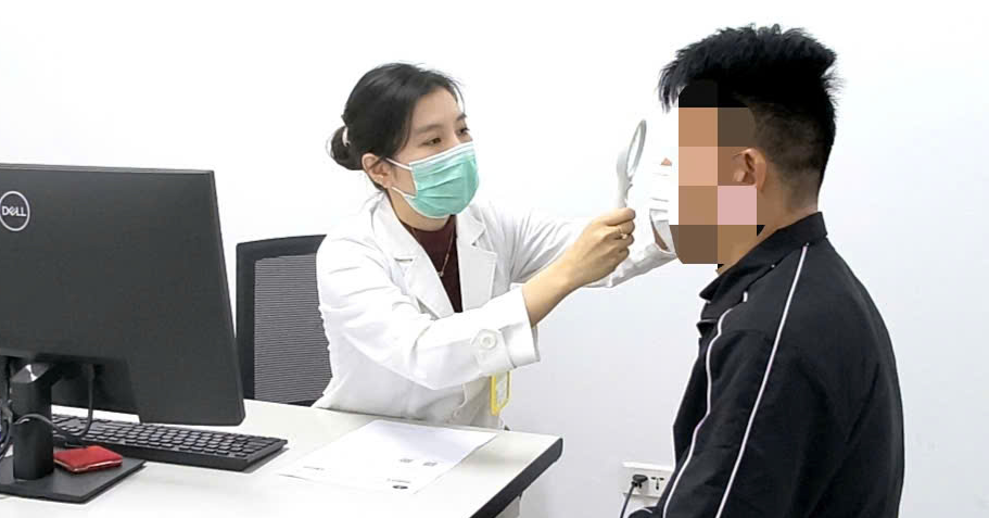 Bác sĩ chuyên khoa 1 Nguyễn Thị Hòa, chuyên ngành Da liễu, Trung tâm Khám, điều trị theo yêu cầu và Quốc tế, cho biết qua thăm khám phát hiện tại vùng mu của bệnh nhân có nhiều dát màu xanh sáng, kích thước khoảng 1-2mm, kèm theo các sẩn nhỏ và nhiều vết xước do cào gãi. Kết quả soi da dưới kính hiển vi cho thấy hình ảnh rận mu (Pthirus pubis) di chuyển.