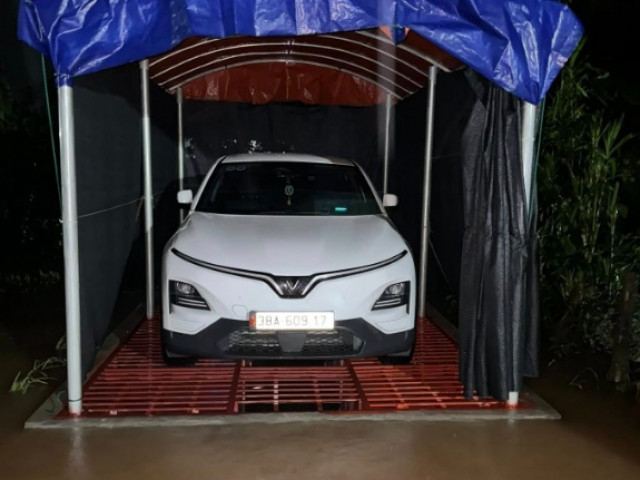 Tại Hà Tĩnh, một chủ sở hữu VinFast VF 6 đã gây chú ý khi tự chế bè nổi để bảo vệ xe trước nguy cơ nước lũ dâng cao.