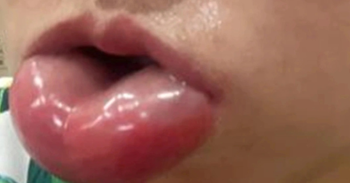 Vùng môi bệnh nhân sưng vù ở thời điểm đến viện (Ảnh: Bác sĩ cung cấp).