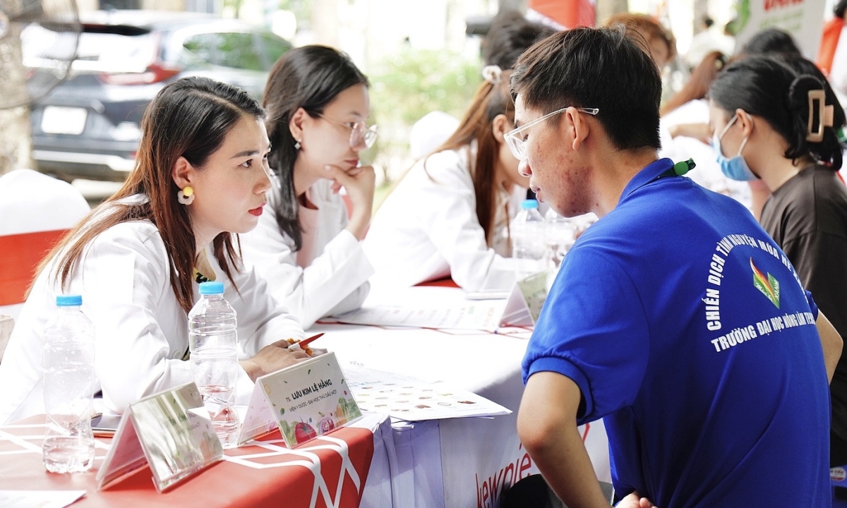 Sinh viên được tư vấn chuyên sâu từ các chuyên gia dinh dưỡng. Ảnh: Vân Anh