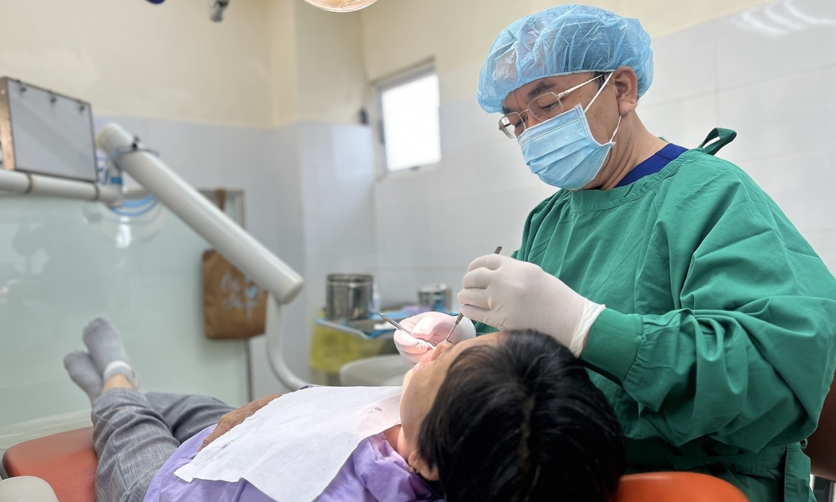 BS.CK2 Nguyễn Anh Ninh, Trưởng Khoa Lão Nha, Bệnh viện Răng Hàm Mặt Trung ương, thăm khám người bệnh. Ảnh: Bệnh viện cung cấp