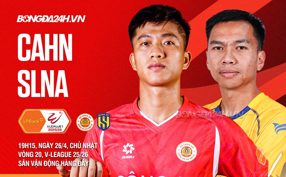 Vòng 20 LPBank V.League 1-2025/2026 chứng kiến cuộc đọ sức đầy duyên nợ giữa Công an Hà Nội (CAHN) và Sông Lam Nghệ An (SLNA) vào lúc 19h15 ngày 26/4 trên sân vận động Hàng Đẫy.