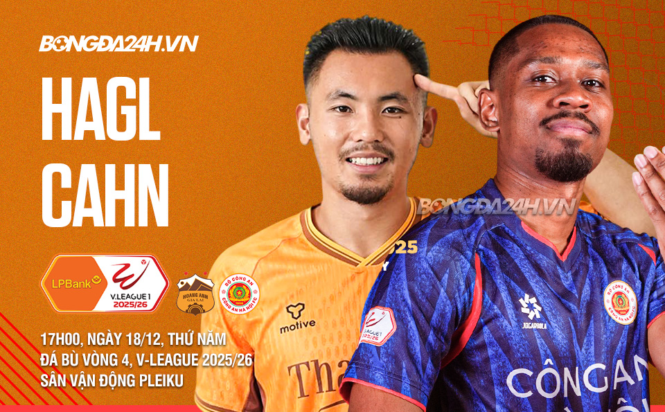 Trong bối cảnh bóng đá nội đang tạm nghỉ để nhường chỗ cho các cấp độ đội tuyển, trận đá bù vòng 4 V.League 2025/2026 giữa HAGL và CAHN diễn ra vào lúc 17h00 ngày 18/12 chắc chắn sẽ nhận được nhiều sự quan tâm của người hâm mộ.