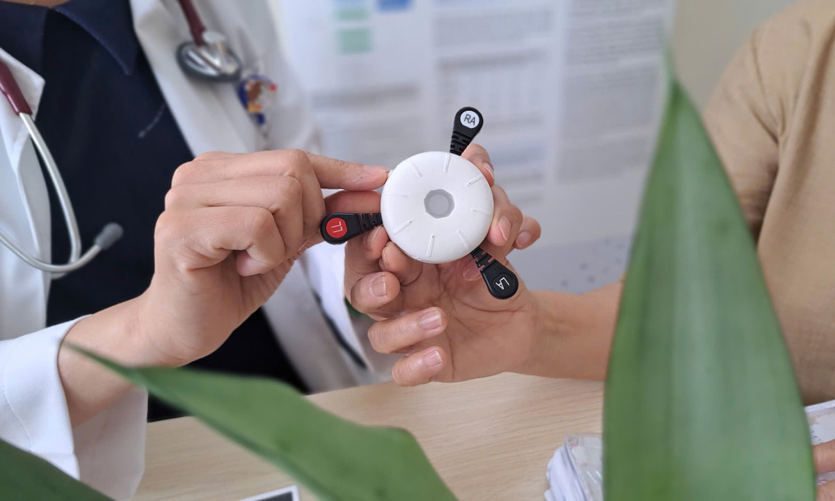 Thiết bị đeo thông minh tích hợp trí tuệ nhân tạo để tầm soát rối loạn nhịp tim do Bệnh viện Nguyễn Trãi phát triển. Ảnh: Bệnh viện cung cấp