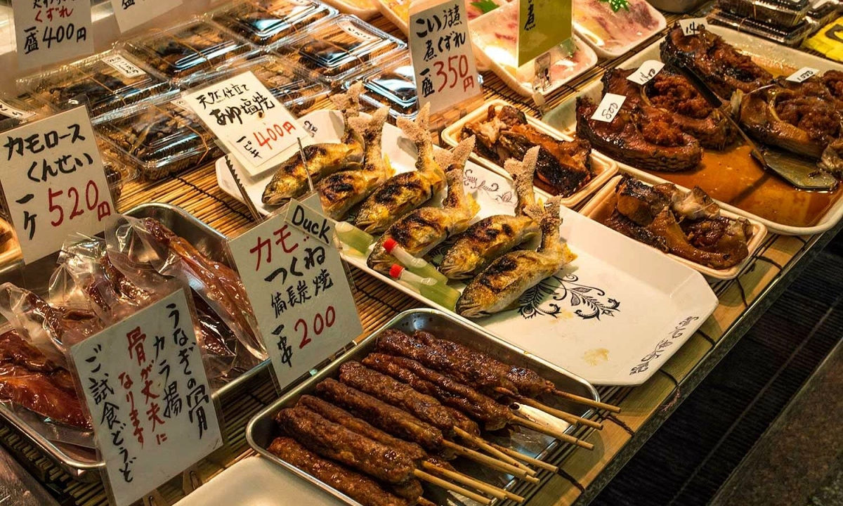 Có thể tìm thấy rất nhiều món ăn đường phố đặc trưng ở các chợ địa phương của Nhật Bản như Nishiki (Kyoto) và Kuromon (Osaka). Tại đây, du khách được “cắn ngập răng” món bánh croquette, tonkatsu, hải sản tươi sống. Du khách hãy thưởng thức những món ăn trong khi đi dạo hoặc nghỉ ngơi trên những chiếc ghế được đặt trước các cửa hàng. Hãy cẩn trọng vấn đề vệ sinh thực phẩm. Lưu ý, một số chợ có thể yêu cầu không ăn uống khi đi bộ nên du khách cần tuân thủ quy tắc của địa phương.