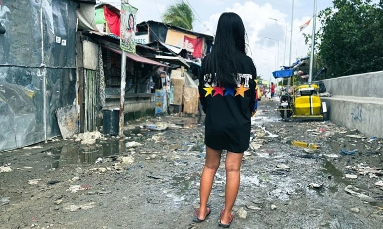 Clara, 14, đứng trong khu dân cư Baseco, nơi nhiều bé gái cho biết đã phải làm mẹ khi tuổi đời còn rất trẻ. Ảnh: CNN