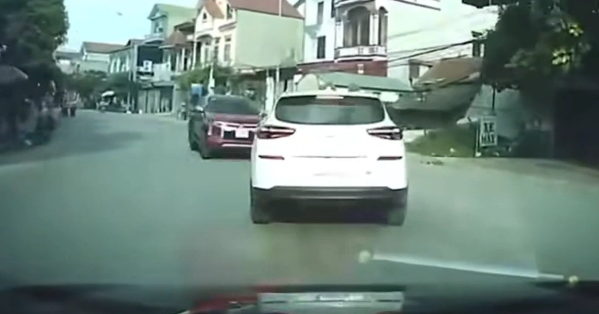 Dù đang chở theo con nhỏ, người phụ nữ vẫn liều lĩnh chuyển hướng gấp trước mũi ô tô, tạo nên tình huống tạt đầu hết sức nguy hiểm. May mắn tài xế ô tô đã kịp thời phanh lại, tránh một vụ va chạm.