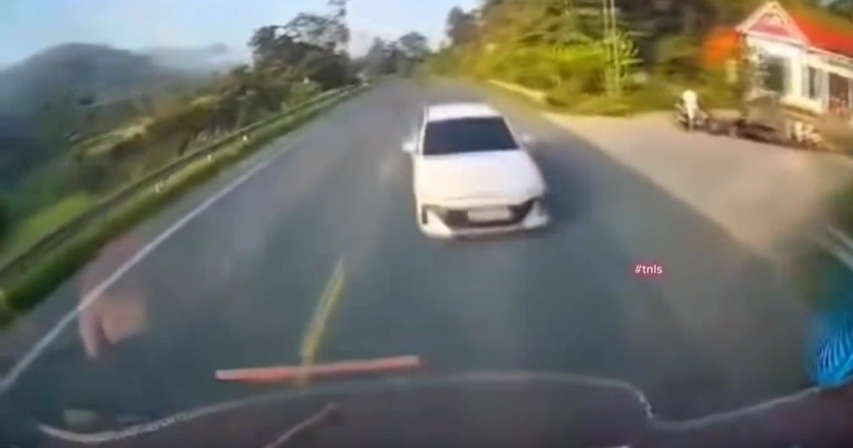 Xe con bất ngờ lấn làn, tông trực diện xe tải chạy ngược chiều (Video: Hà Tú).