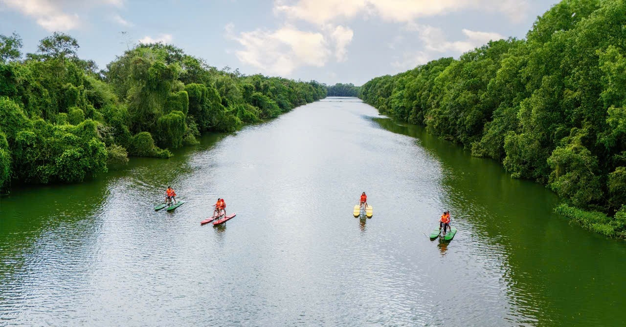 Trải nghiệm tại KBT mở ra theo nhịp điệu chậm, dành cho những hành trình tìm về sự tĩnh tại giữa đời sống thường nhật. Trên những chiếc xuồng ba lá, du khách len lỏi qua các tuyến rạch phủ bèo xanh, nhẹ nhàng tiến vào không gian rừng tràm đặc trưng của vùng đất nhiễm phèn.