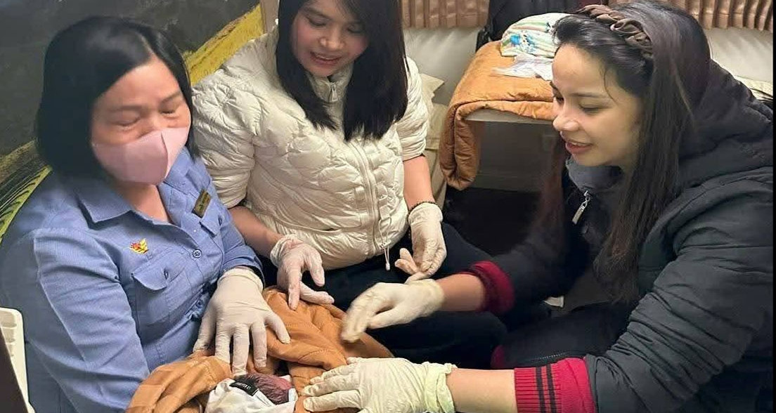 Nghe lời kêu gọi hỗ trợ y tế khẩn cấp, hai nữ sinh đã kịp thời có mặt, bình tĩnh xử trí, trực tiếp đỡ đẻ ngay trên tàu, giúp em bé chào đời an toàn.