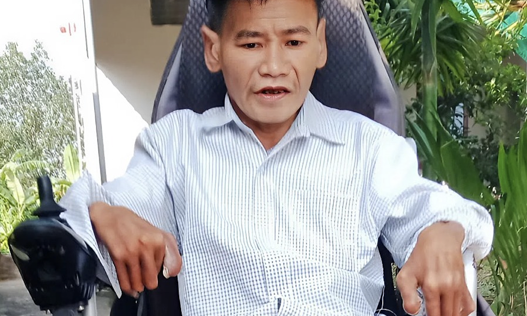 Anh Sơn trên xe lăn tại nhà. Ảnh: Sơn Nguyễn