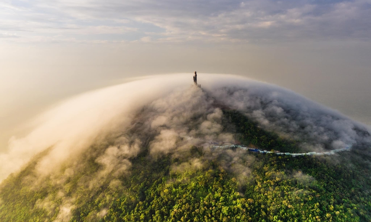 Toàn cảnh khu du lịch từ trên cao với các công trình cảnh quan, tâm linh. Ảnh: Nguyễn Minh Tú