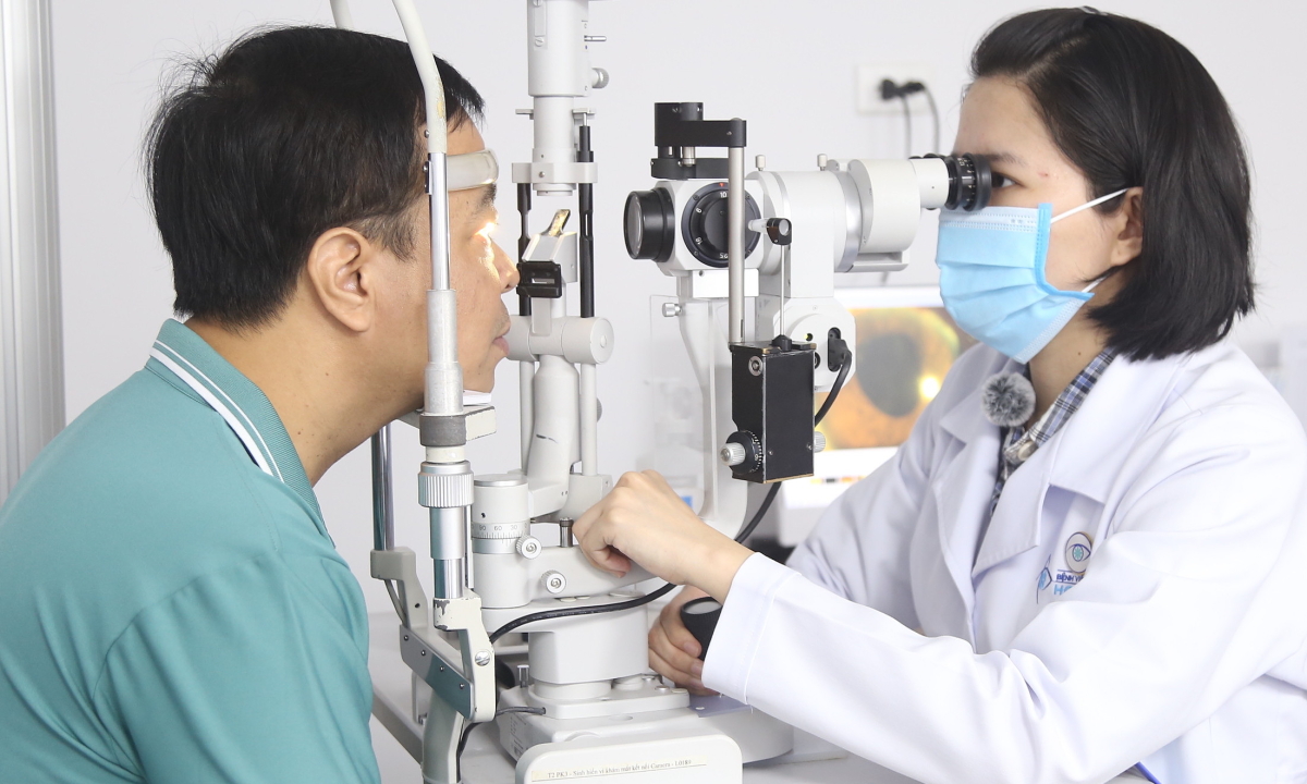 Bác sĩ khám mắt bệnh nhân. Ảnh: Bệnh viện cung cấp