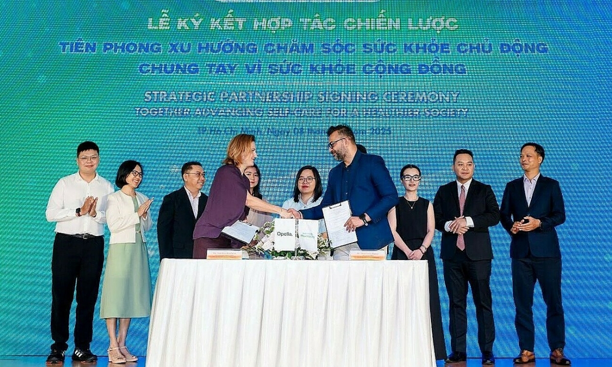 Đại diện Pharmacity và Opella Việt Nam ký kết hợp tác chiến lược tại sự kiện. Ảnh: Opella Việt Nam