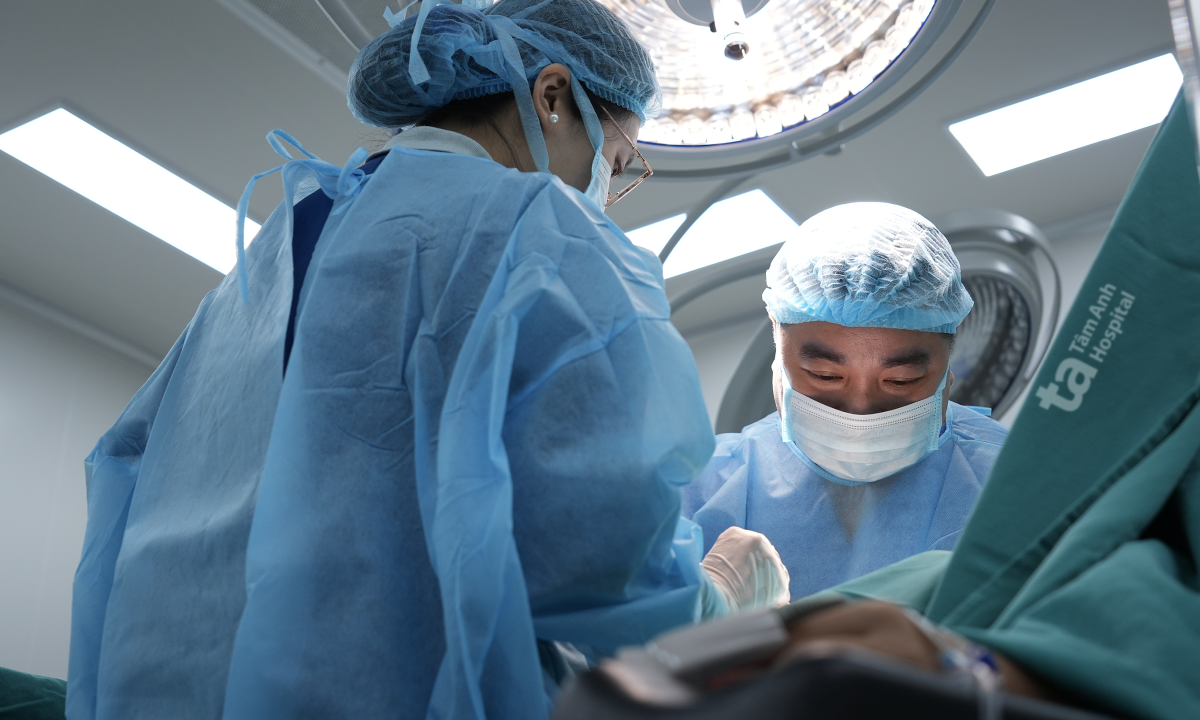 Êkíp phẫu thuật giai đoạn hai cho ông Hùng. Ảnh: Bệnh viện Đa khoa Tâm Anh