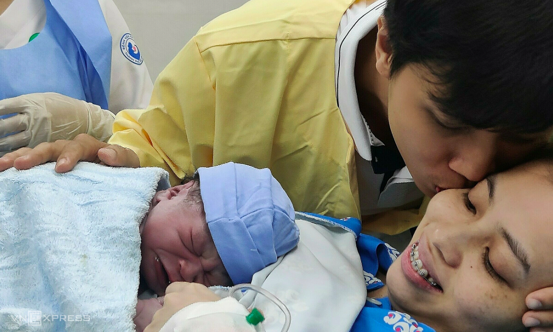 Cặp vợ chồng đón con trai chào đời ngày 1/1/2023 tại Bệnh viện Từ Dũ, TP HCM. Ảnh:Mỹ Ý