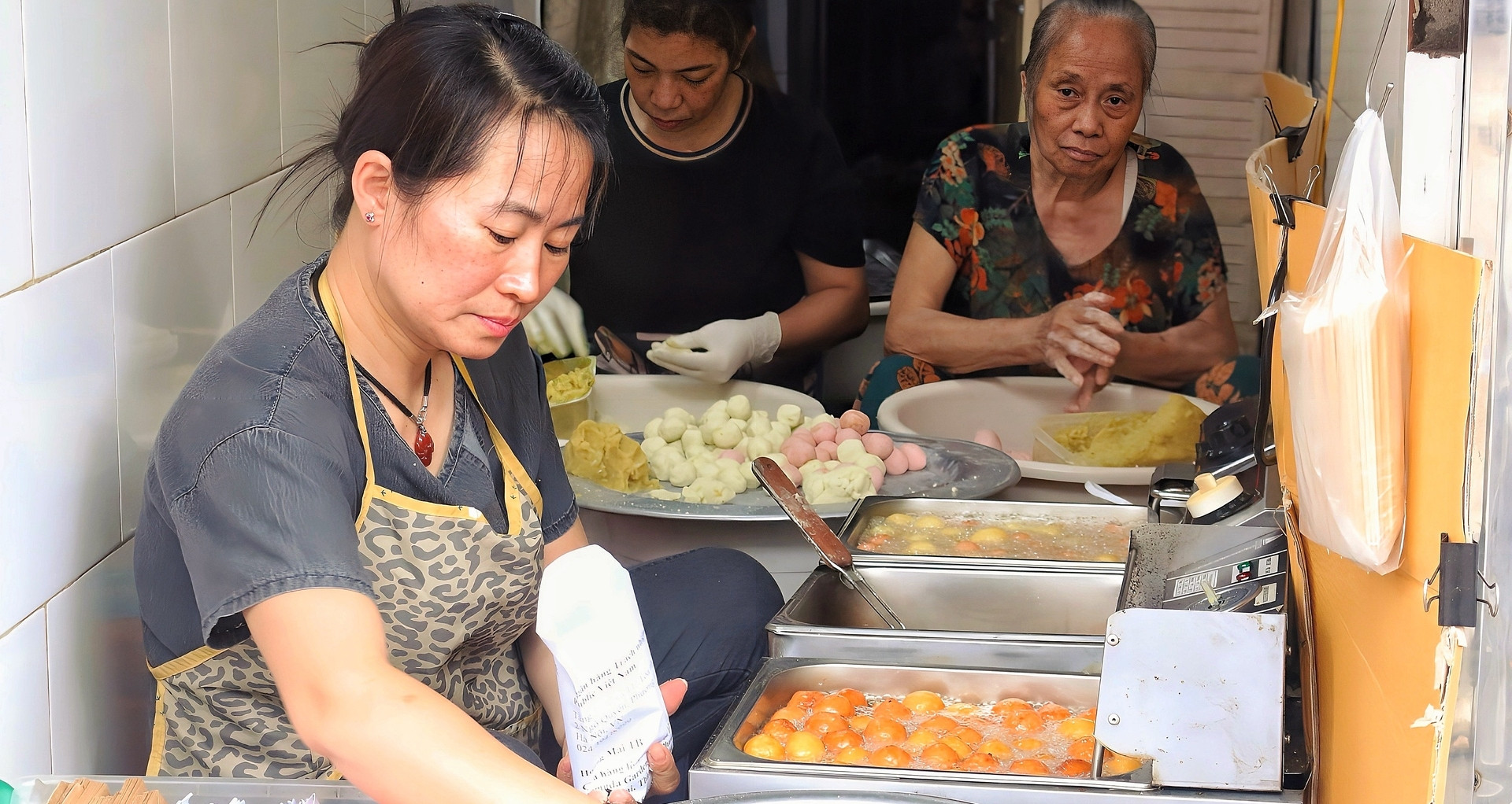 Phải mất thời gian khá dài, chị mới tìm ra công thức hoàn thiện và cách căn chỉnh nhiệt độ dầu phù hợp. Mỗi ngày, chị chuẩn bị nguyên liệu từ 5h và mở bán từ 14-18h. Ngày mát trời hoặc se lạnh, quán bán càng chạy, có khi chỉ 3 tiếng đã hết sạch hàng.