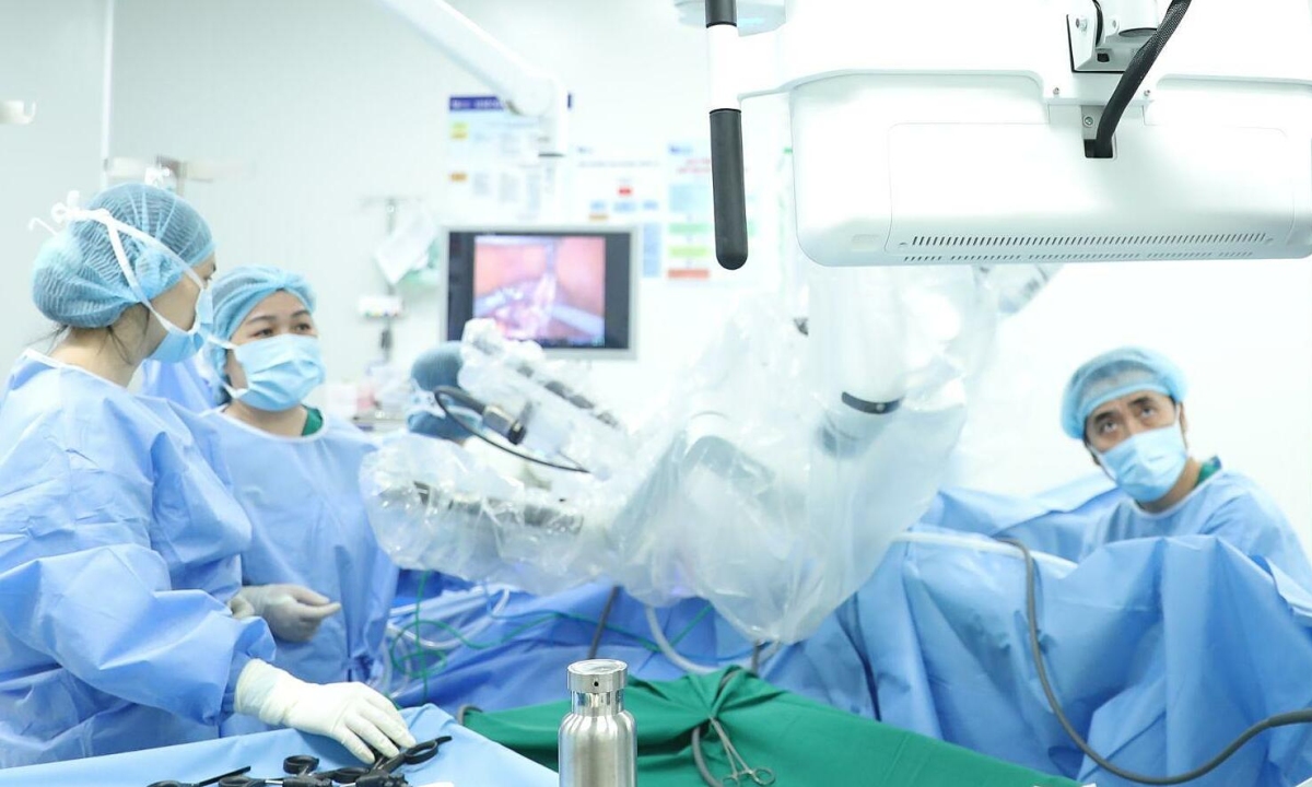 Êkíp bác sĩ áp dụng robot Da Vinci Xi để khôi phục vị trí tử cung, bảo tồn thành công cho người bệnh. Ảnh: Trung Vũ